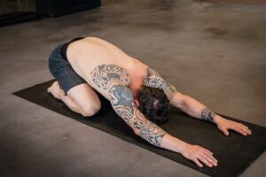 De Child’s Pose is een ideale oefening om meer ROM te bewerkstelligen. Zowel thoracaal als in de schouderregio.